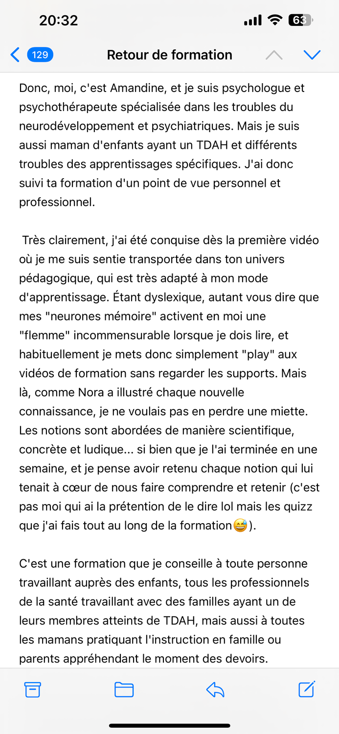 C'est d'ailleurs exactement ça qui m'a poussée à faire cette formation car beaucoup de personnes pensent que la réponse se trouve dans le matériel Montessori ou autre! Absolument pas! La désillusion est totale quand ils se rendent compte que malgré leurs efforts ça ne fonctionne pas! Nos connaissances sur le cerveau sont des clés essentielles à avoir, sans elles les autres portes restent malheureusement fermées!